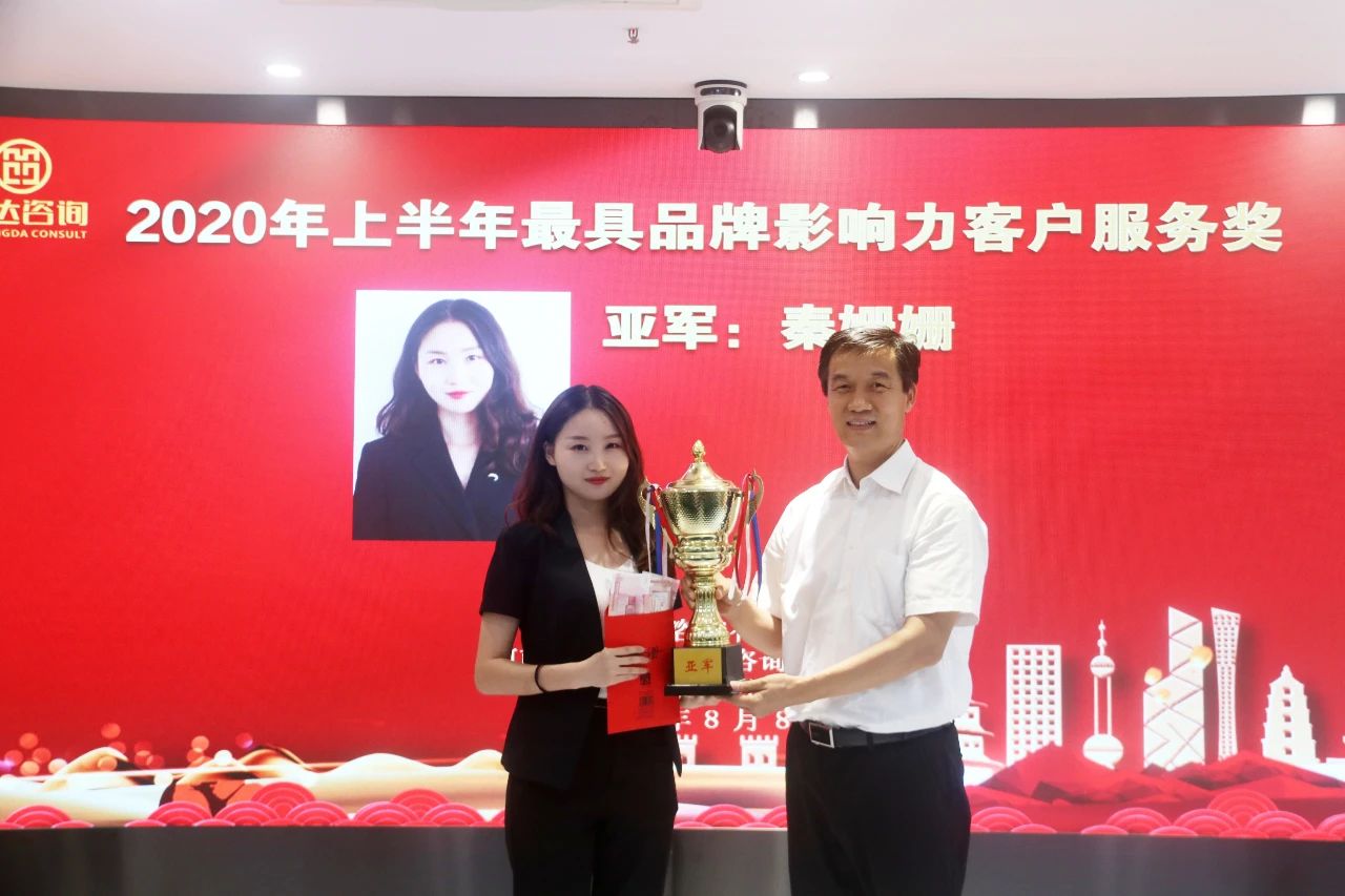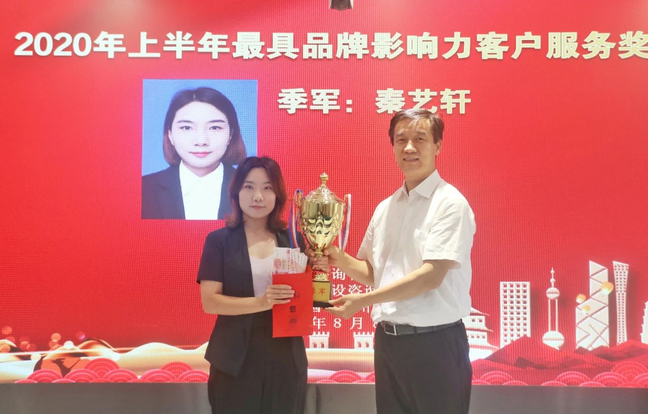 董事長楊明宇為在2020年上半年客戶服務(wù)工作中表現(xiàn)突出的先進(jìn)個(gè)人頒發(fā)獎(jiǎng)杯和獎(jiǎng)金。
