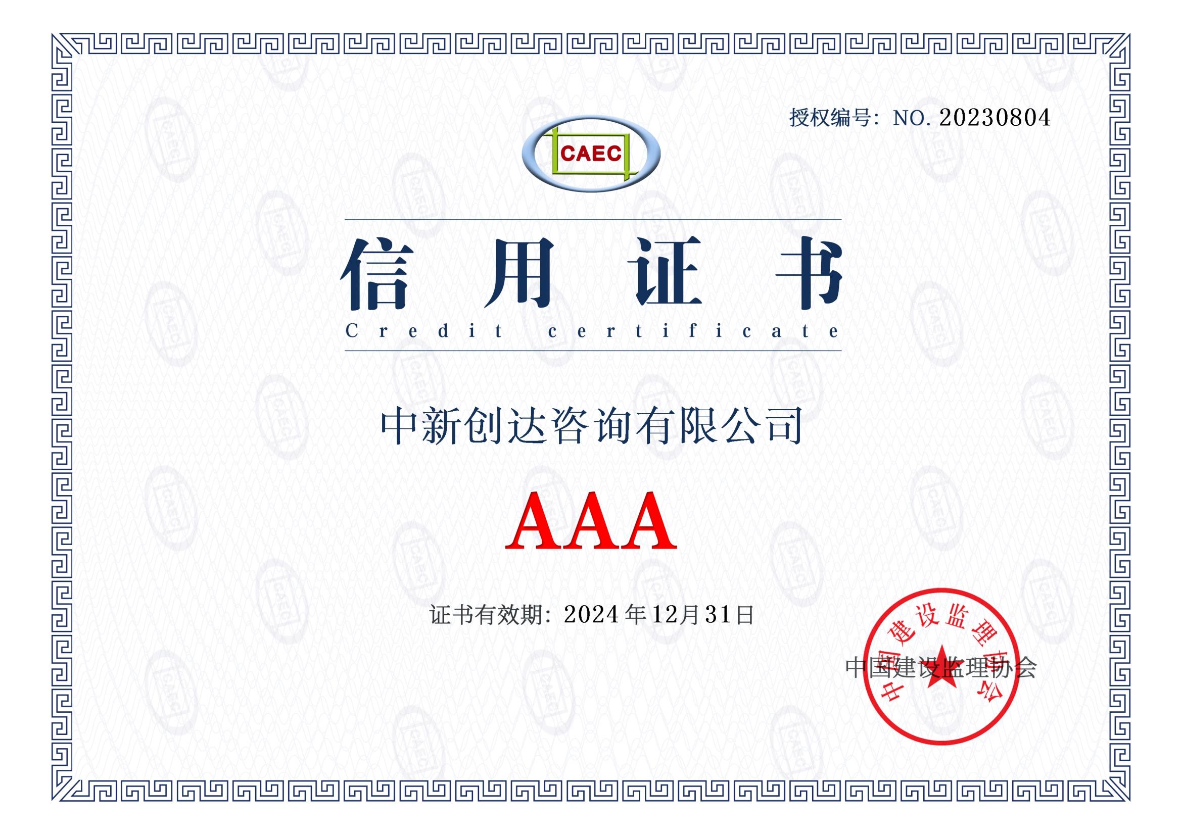 中國建設監(jiān)理協(xié)會AAA信用證書