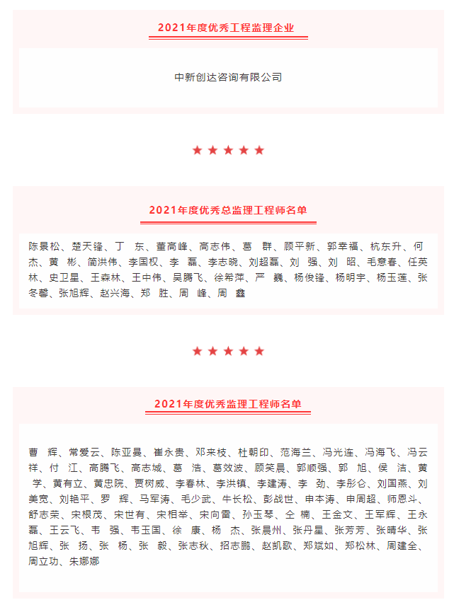 近日,河南省建設(shè)監(jiān)理協(xié)會(huì)發(fā)布《關(guān)于表彰2021年度在推動(dòng)行業(yè)發(fā)展等方面做出優(yōu)異成績(jī)的工程監(jiān)理企業(yè)和個(gè)人的決定》,評(píng)選出在行業(yè)內(nèi)對(duì)2021年度在黨團(tuán)基層組織建設(shè)、公益慈善事業(yè)、誠(chéng)信履職盡責(zé)、參與行業(yè)公共事務(wù)、推動(dòng)行業(yè)發(fā)展等方面做出優(yōu)異成績(jī)的工程監(jiān)理企業(yè)和從業(yè)人員進(jìn)行通報(bào)表彰。創(chuàng)達(dá)咨詢(xún)榮獲“2021年度優(yōu)秀工程監(jiān)理企業(yè)”稱(chēng)號(hào),獲獎(jiǎng)人數(shù)再創(chuàng)新高!