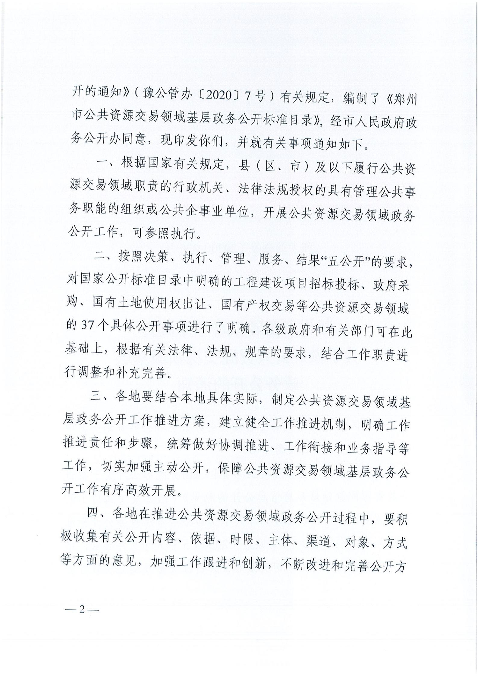 鄭州市發(fā)改委關于做好公共資源交易領域基層政務公開的通知鄭發(fā)改公管2020-322號(含標準目錄)